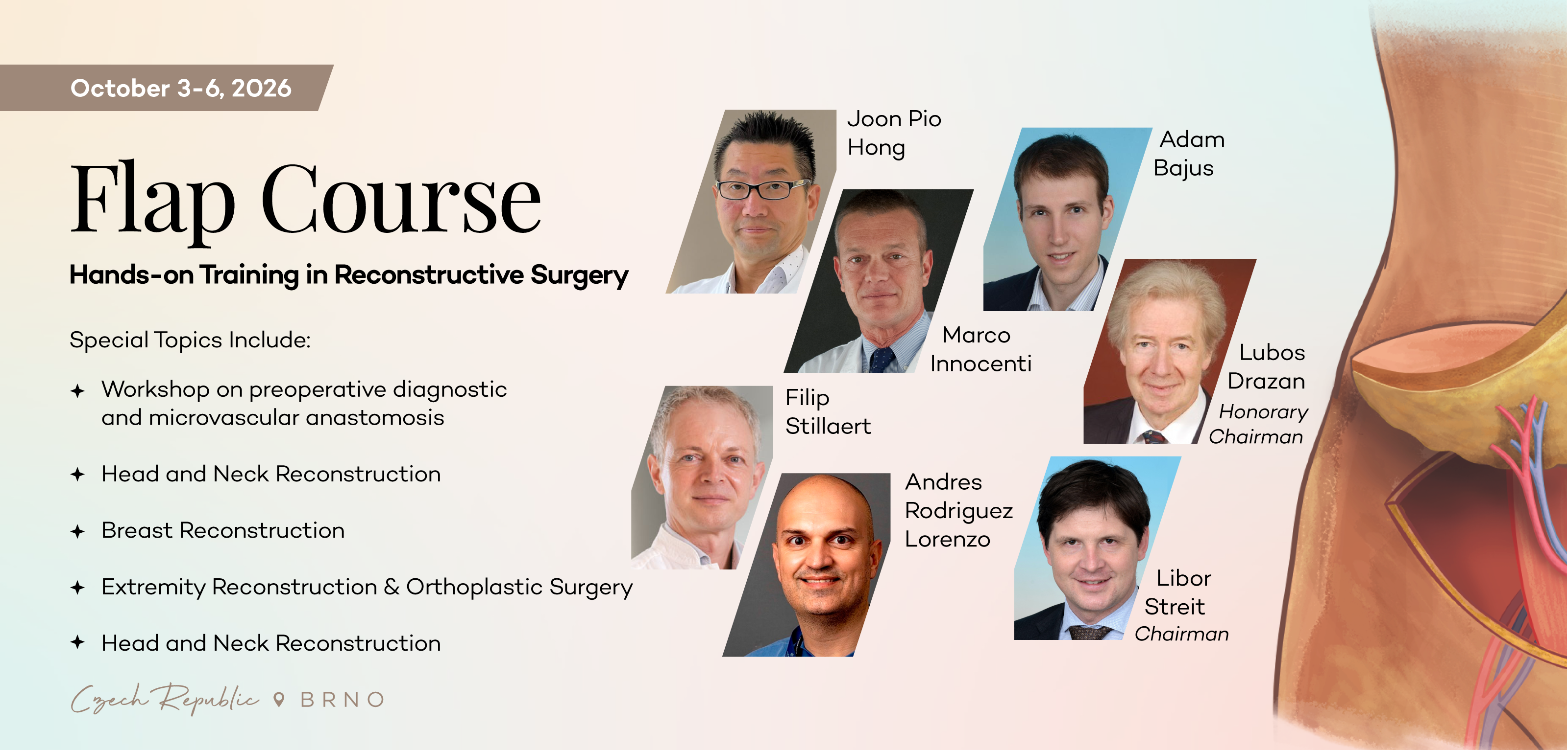 It is my great pleasure and honour to invite you to the Brno Flap Dissection Course, taking place in Brno, Czech Republic, from September 20-23, 2025.